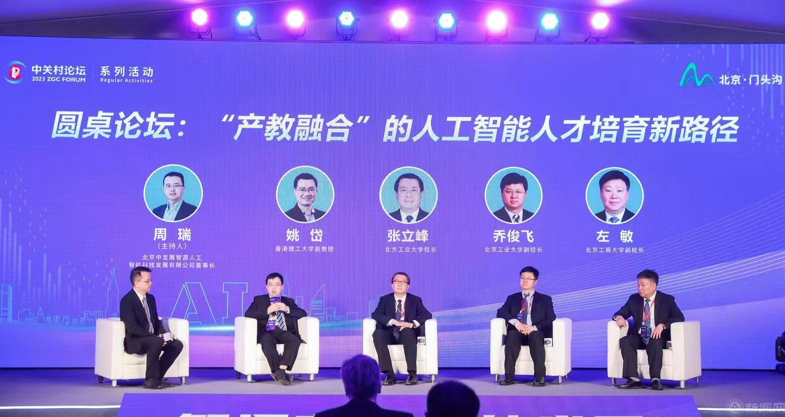 5月8日,由北京市人才工作局、北京市教委、北京市科委、中关村科技园管委会、北京市经信局、北京市科协与门头沟区共同主办的“北京人工智能产业创新发展人才高峰论坛”在金隅琉璃文化创意产业园举行。校党委副书记、校长张立峰出席活动,参加高峰论坛讨论,并参与“京西人工智能协同创新人才港”项目启动。