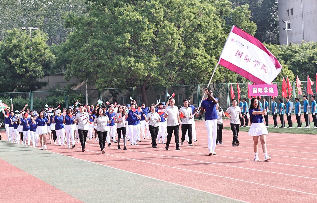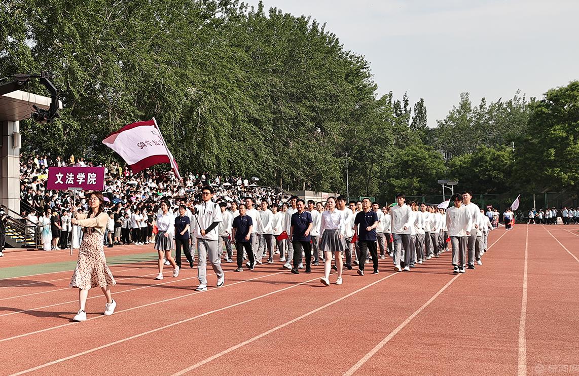 随后是运动员入场仪式。博士研究生方队、硕士研究生方队,以及11个二级学院的方队精神饱满地走进运动场。他们衣着统一、队形整齐、口号嘹亮,各学院班子成员走在所在方队的前列。