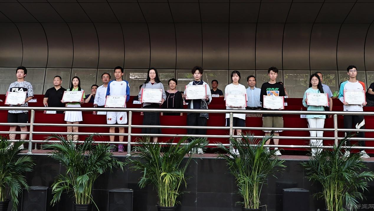 校领导为获奖单位和运动员代表进行了颁奖。