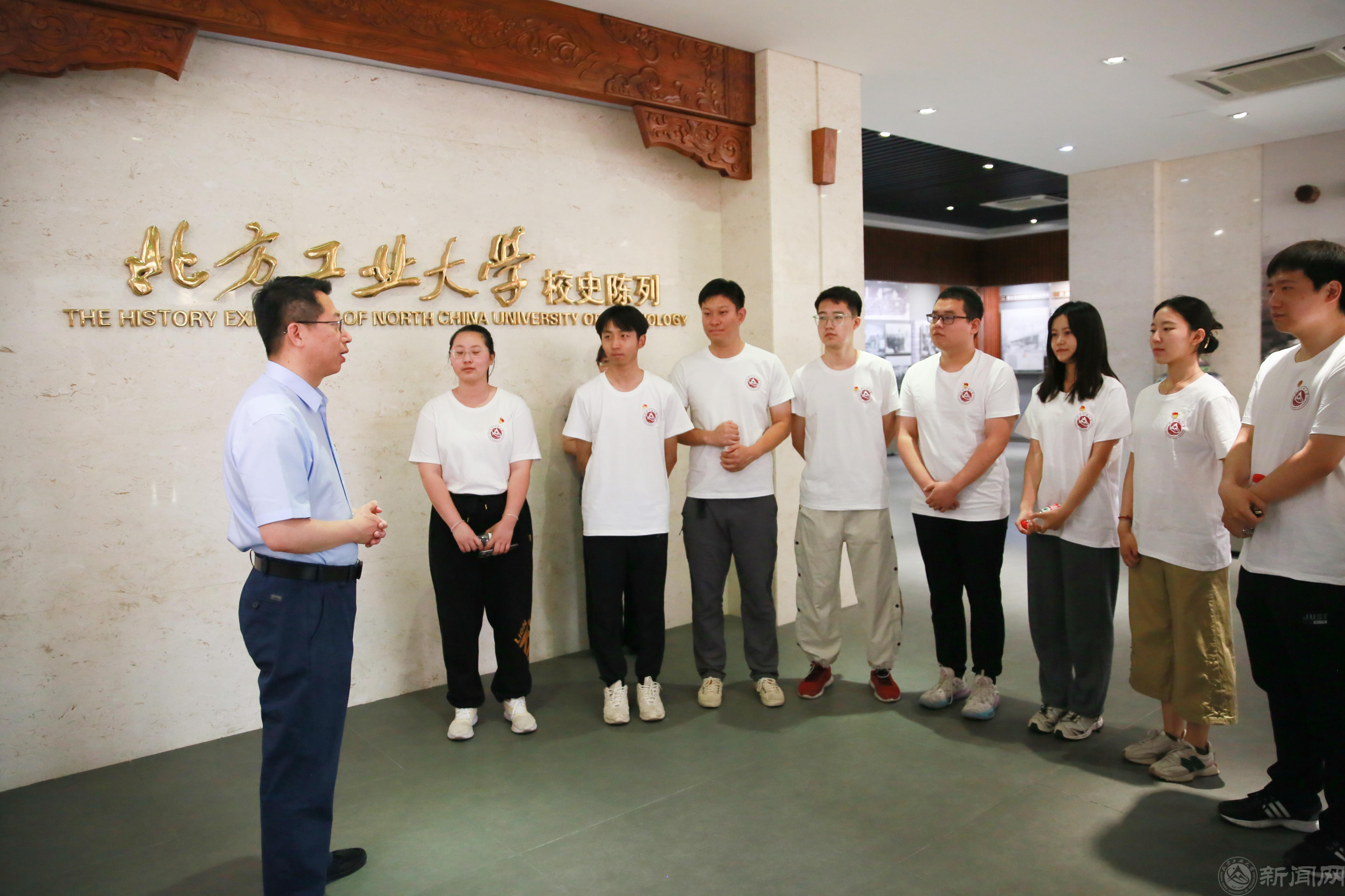 缪劲翔带领毕业生代表一起走进校史馆重温校史,共同回顾学校七十余载兴工报国路。缪劲翔指出,校史是学校成长发展的刻录,是校园文化精神的载体。他从“传承兴工报国精神”“追忆先贤光辉事迹”“青春建功新时代”三个方面,重点回顾了伟德官网在77年办学历程中,始终传承“工业报国、工业兴国、工业强国”的精神血脉,聚焦国家战略发展需要加快人才培养的奋斗历程;生动介绍了伟德官网首任校长陈光熙一片赤诚心向党、兴工报国育人才,齐东旭教授潜心钻研计算机图形学领域,科研精神薪火传,仇春霖先生打造美育研究高地、创工科院校美育先河的感人事迹;深情讲述了新时期北方工大人不忘初心使命,主动对接国家和北京市经济社会发展新要求,开启全面建设高水平应用型大学新征程的不懈努力,希望青年学生深入思考教育强国,青年何为,民族复兴,青年何为,坚定理想信念,敢于实干担当,争做时代新人。