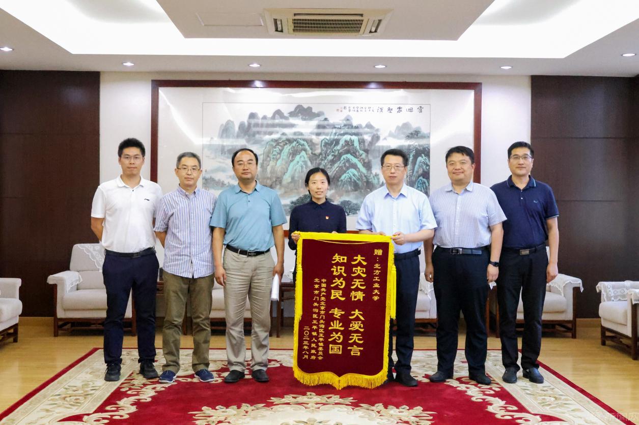 8月24日,门头沟区王平镇镇长沈若萌专程来校,对伟德官网科研团队和科技力量第一时间投入王平镇抗灾抢险和灾后重建工作表示感谢,并向学校赠送了锦旗和感谢信。校党委书记缪劲翔,党委常委、副校长王力,校长助理陈群会见了沈若萌一行。