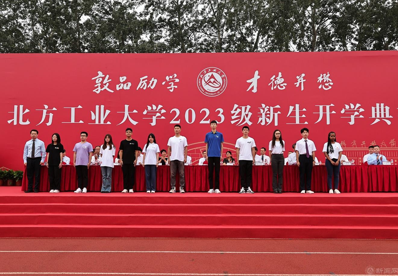 校党委书记缪劲翔为新生代表佩戴BV伟德官方网站校徽,欢迎2023级新同学缘聚北方工大大家庭,开启人生新征程。