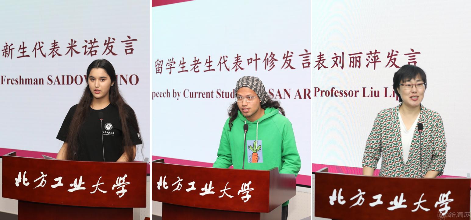 塔吉克斯坦籍新生代表SAIDOVA MINO在发言中对即将踏上求知的新旅表达出最热烈的欢迎和期待。她表示将珍惜每一次学习的机会,努力学习汉语,了解中国文化,做中外交流的友好使者。孟加拉国籍在校生代表HASAN ARIF在发言中对学校提供的良好学习环境、丰富图书资源,以及耐心专业的指导教师表示感谢,并分别从认真学习专业知识、积极参加学校活动等方面分享了经验和感悟。教师代表刘丽萍副教授在发言中对2023级新生同学的到来表示热烈欢迎,并对新生同学提出三点希望,一是认真规划好自己的学习和生活,二是广交朋友, 三是在中国能有幸福快乐的生活。