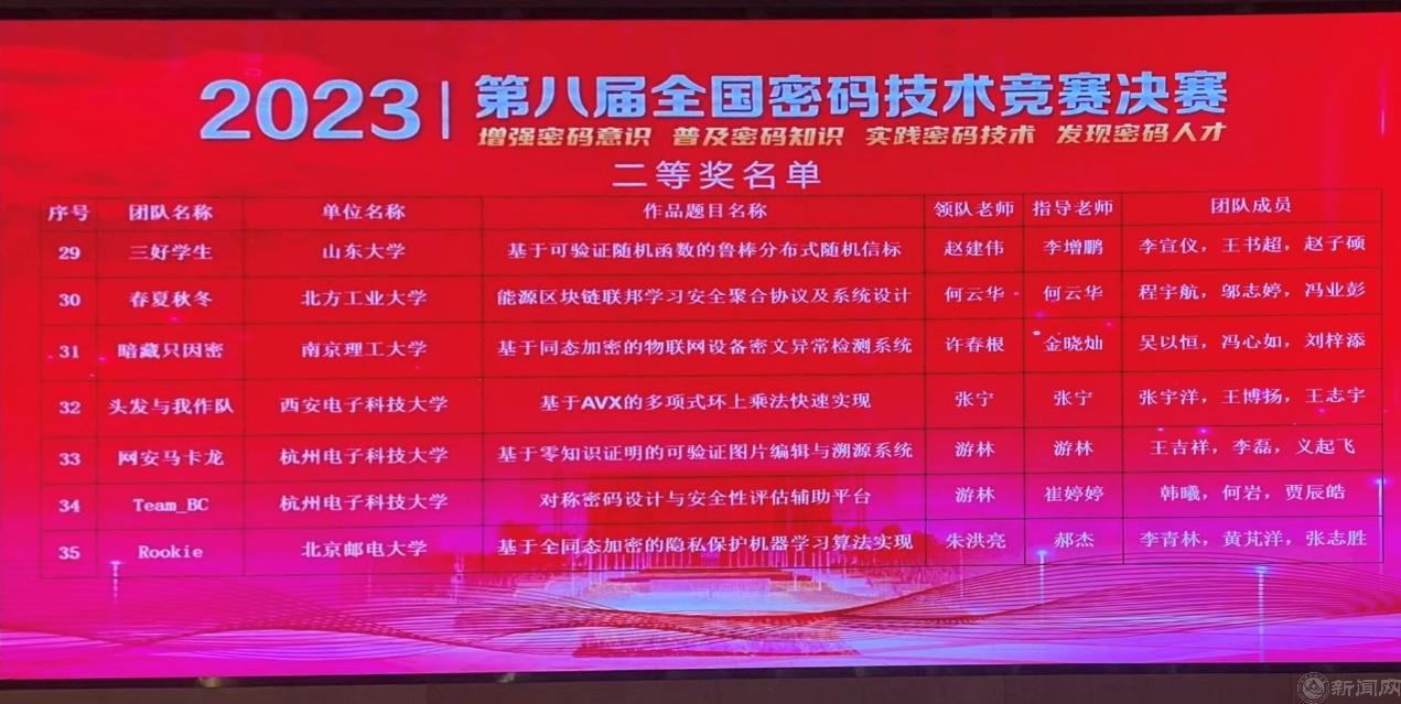 11月25日,由国家密码管理局指导、中国密码学会主办的“第八届全国密码技术竞赛”决赛在新疆大学信息科学与工程学院落下帷幕。伟德官网在比赛中获全国二等奖1项、三等奖5项,学校获得“优秀组织奖”,获奖情况在全国高校中位居前列。