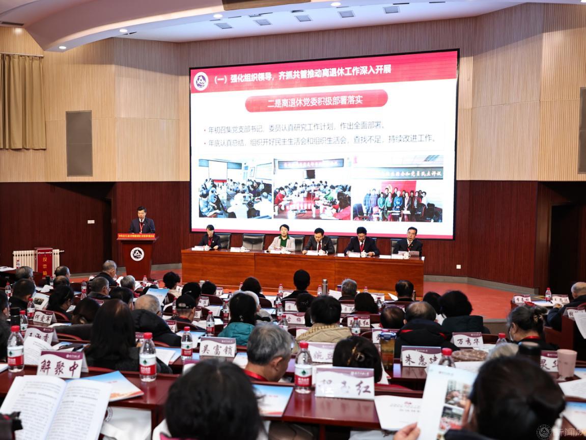 离退休党委书记赵永兵代表第二届党委做题为《加强政治引领、发挥优势作用,为全面推进新时代离退休工作高质量发展而努力奋斗》的工作报告。他回顾总结了本届党委在强化组织领导、“三项建设”、宣传思想工作、服务关怀、全面从严治党、优势作用发挥等六个方面的成绩,分析了在理论学习、党支部建设、调查研究和精准服务等方面存在的不足。明确了今后五年的主要任务是:提高政治站位、加强政策学习、加强组织建设、加强激励关怀、加强业务培训等五个方面。大会号召,全体离退休教职工要坚决贯彻执行上级党组织和学校党委的工作部署,凝心聚力、守正创新、踔厉奋发、勇毅前行,以饱满的热情、昂扬的姿态,为学校高水平应用型大学建设做出更大贡献!