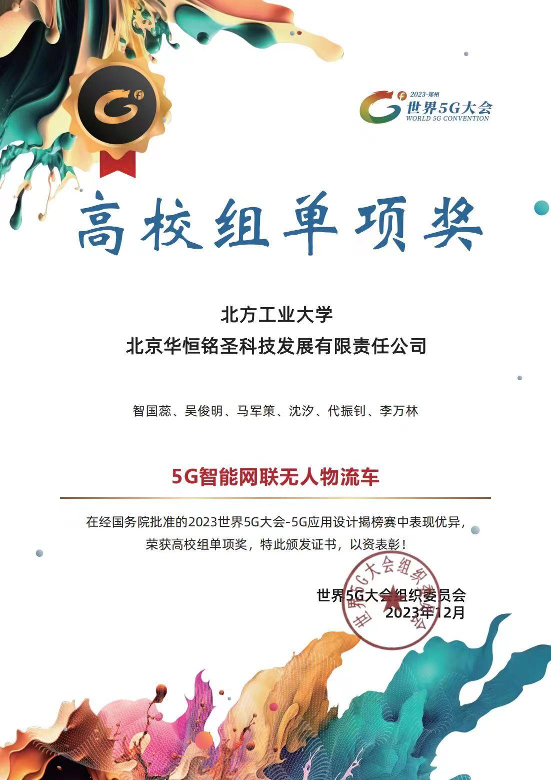 12月6日至8日,由科学技术部和河南省人民政府共同主办的“世界5G大会”在河南郑州召开,大会以“5G变革、共绘未来”为主题进行深入交流研讨,并为“5G设计解揭榜赛”隆重举行颁奖仪式。由伟德官网信息学院-李万林教授团队完成的项目“5G智能物联无人物流车”喜获高校组中唯一的一等奖——“高校组单项奖”。