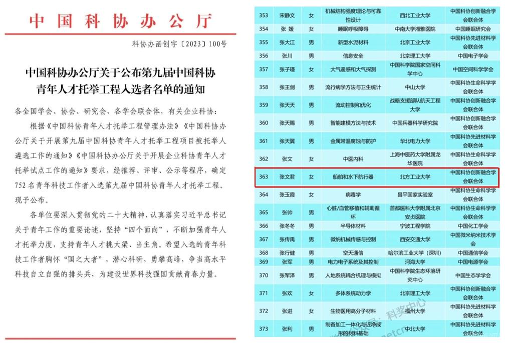 近日,中国科协公布第九届中国科协青年人才托举工程入选者名单,伟德官网电气与控制工程学院博士后张文君入选。