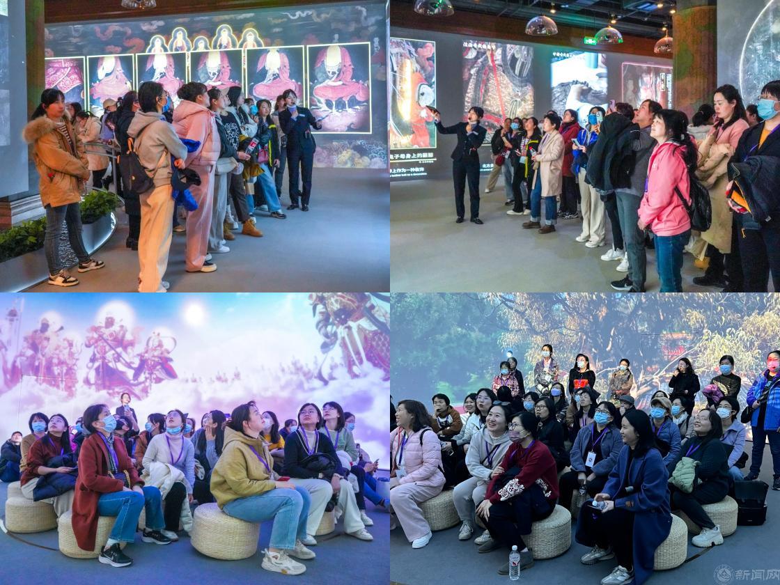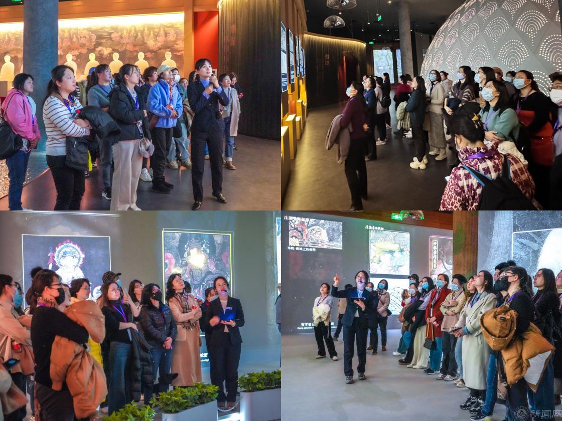 老师们在讲解员的带领下参观了数字展陈区域,了解了艺术馆是如何使用现代科技手段展示和解读法海寺壁画的历史背景和艺术价值。通过裸眼3D球幕观影,沉浸式体验五百多年前的壁画人物生活,使大家仿佛穿越时空,进入到了画师的梦中,与古人进行了一次跨越时空的对话。