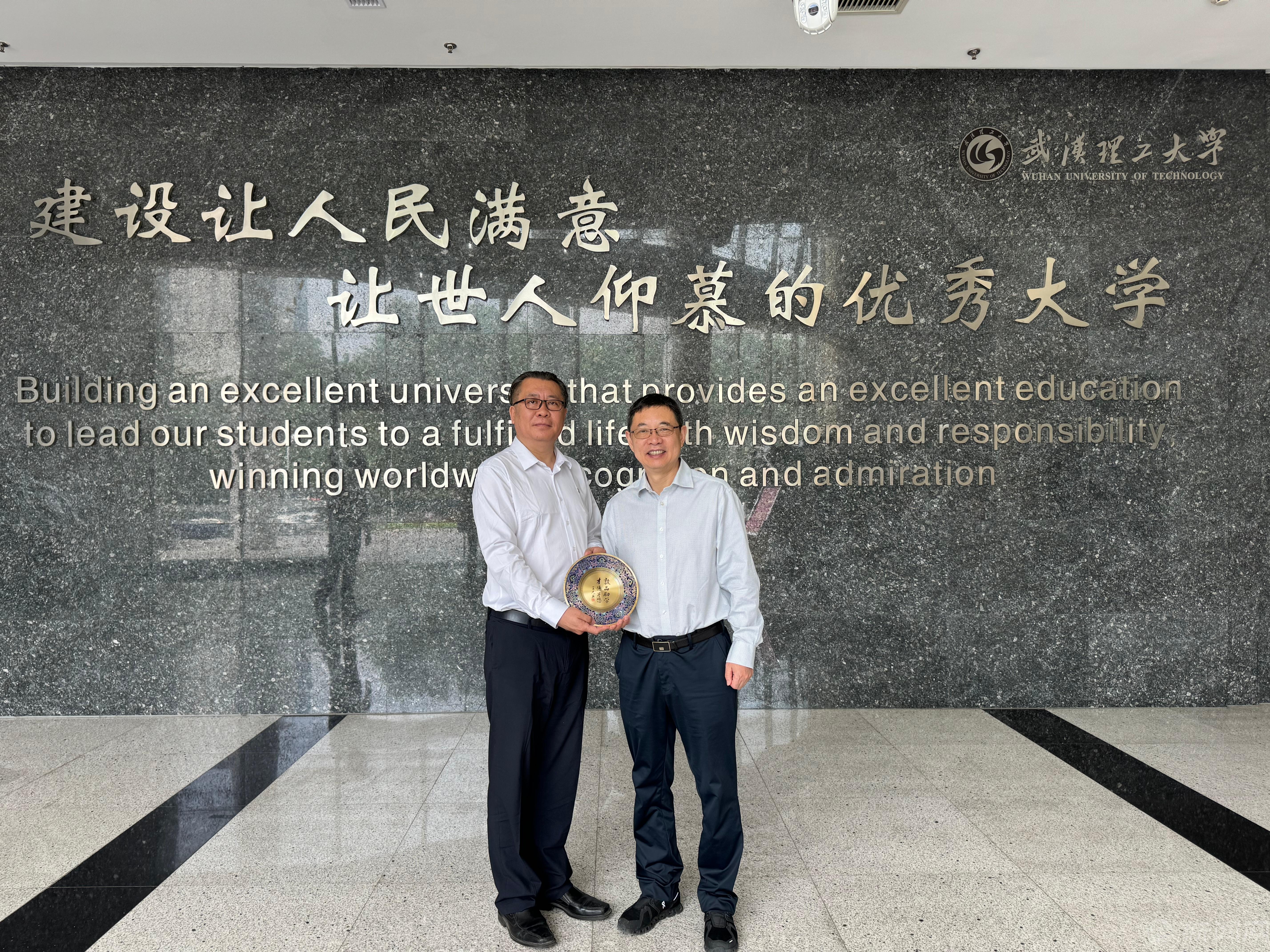 5月10日,校党委副书记、校长张立峰,副校长卢晓斌带队赴武汉理工大学调研交流。武汉理工大学党委副书记、校长杨宗凯,党委副书记赵经接待了学校一行并召开座谈会。