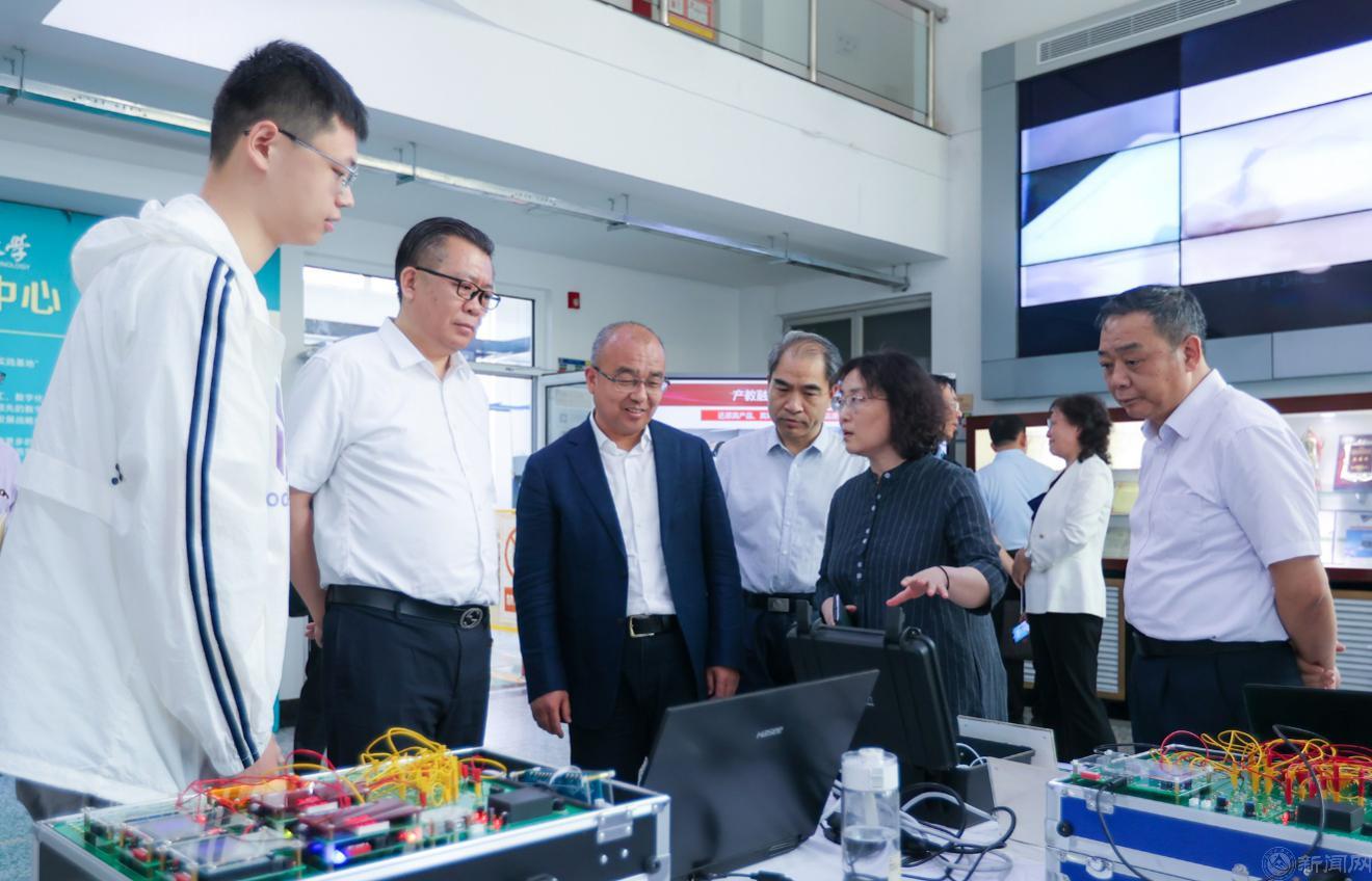 随后,于英杰书记一行来到“工程训练国家级教学示范中心”,听取学校关于深化本科教育教学改革的情况汇报,参观了智能制造实验室,与现场实习学生进行深入交流,观看学生科技创新作品,对伟德官网在推进产教融合和数字化转型方面取得的成绩给予肯定。