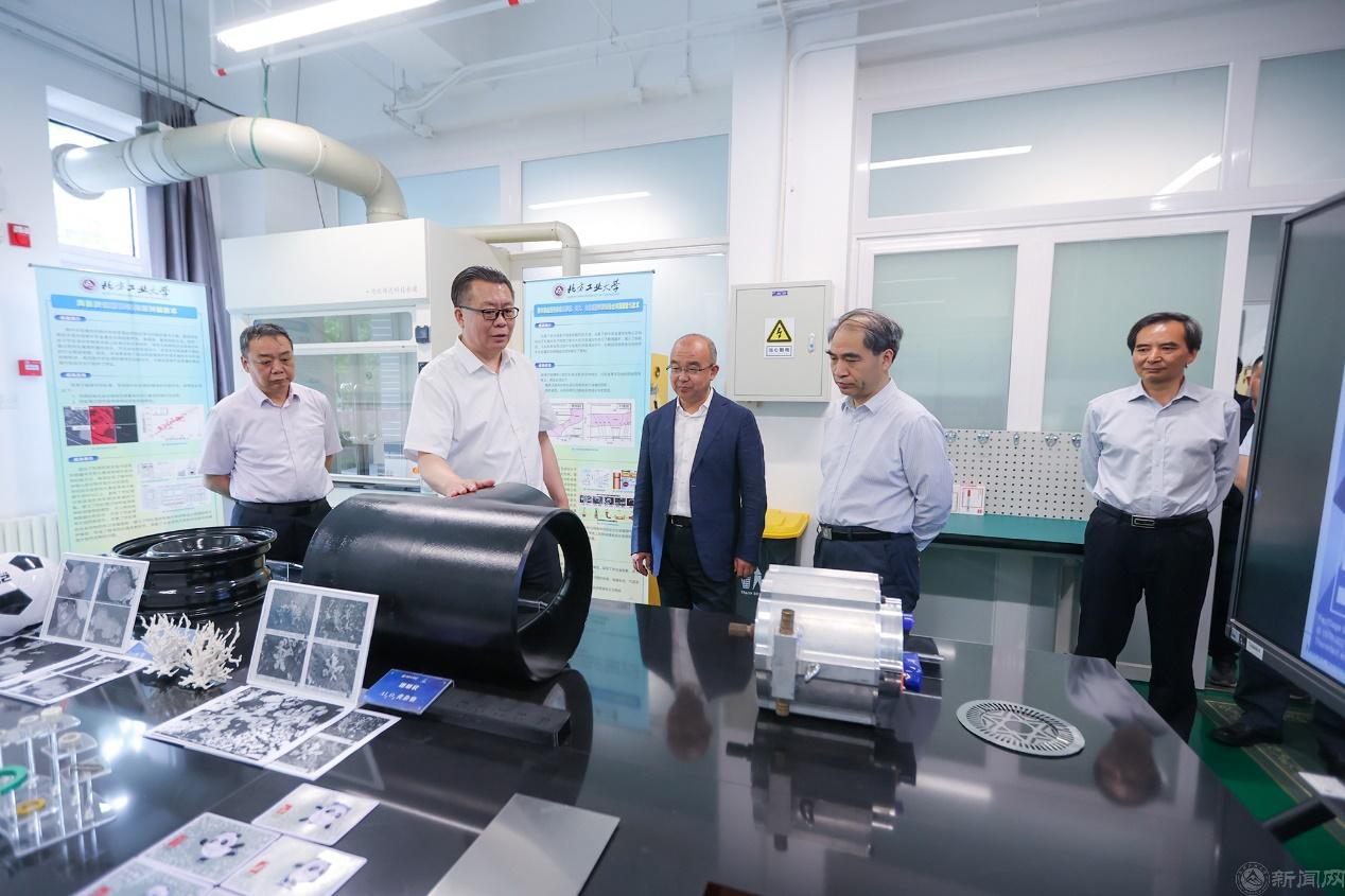 在博智楼,于英杰书记参观了先进制造用高品质钢铁材料制备实验室,深入了解“北京市工人先锋号”科研团队瞄准技术难关,助力新质生产力培育和提升方面情况。于英杰书记对“高钢中心”团队取得的成就表示肯定,希望学校继续发挥科研优势,在推动国家高水平科技自立自强中发挥重要作用。