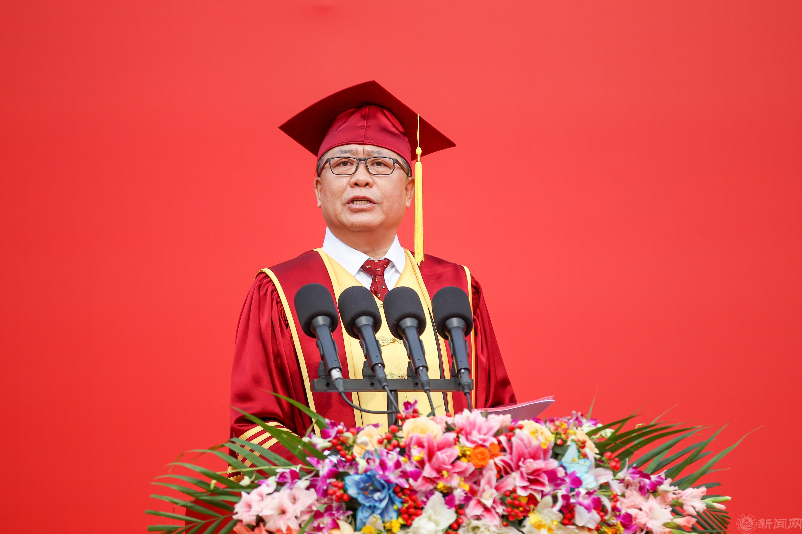 作为校长,我有幸吹过你吹过的青春之风,这就算相拥;我也走过你走过的毓秀小路,这就算相逢。从你们大学的时光里看到了我31年前大学毕业的影子,作为你们的师长和校长,在展望你们充满机遇和挑战的人生下一站的临别之际,我送你们两个关键词“青春”和“友谊”,也和你们分享一些肺腑之言,希望能够给予你们信心和力量,帮助你们勇敢面对前行道路上的每一次困难与挫折。就三句话: