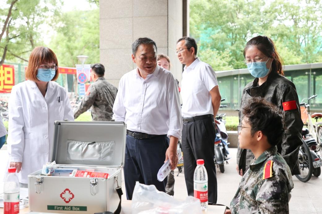 9月10日下午,校党委书记刘军深入2024级学生军训团调研指导军训工作,慰问承训部队教官、带队教师、参训学生和服务保障人员。党委副书记史贞军参加了调研与慰问。