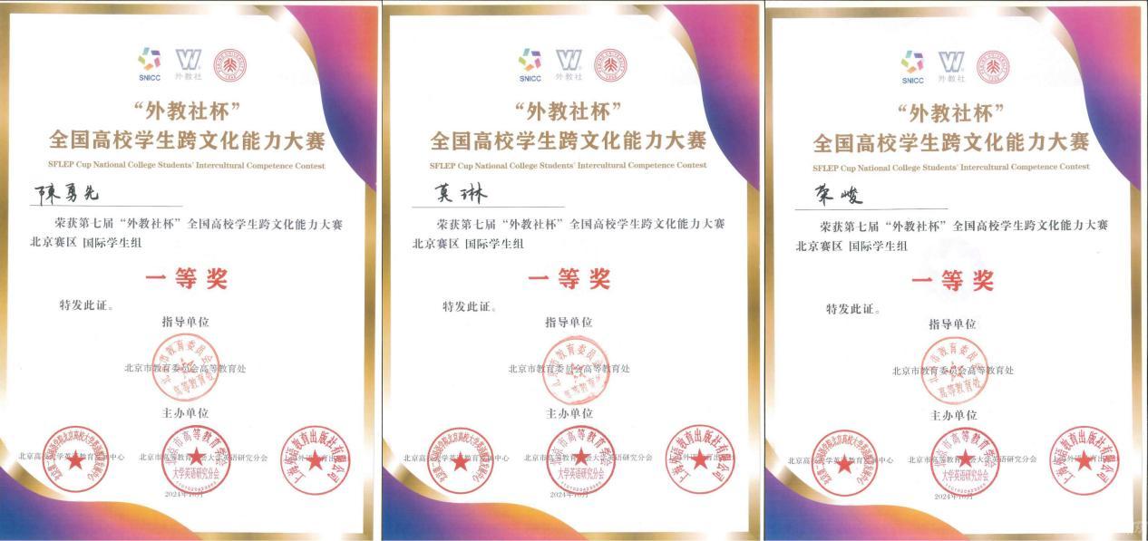 由北京高校大学英语教育发展中心、北京市高等教育学会大学英语研究会和上海外语教育出版社主办的第七届“外教社”杯北京高校学生跨文化能力大赛于10月26至27日在北京大学举行,伟德官网留学生陈勇先(印度尼西亚)、莫琳(莱索托)和荣峻(德国)组成的团队荣获一等奖。国际学院刘妍、徐美、李燕三位教师获评优秀指导教师奖。