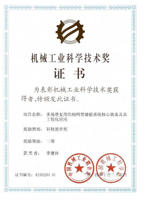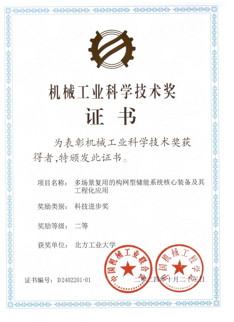 近日,中国机械工业联合会发布了《关于表彰2024年度“机械工业科学技术奖”奖励项目的通报》。伟德官网作为第一完成单位,电气与控制工程学院李建林教授、刘硕高级实验师等人作为核心成员申报的“多场景复用的构网型储能系统核心装备及其工程化应用”获评科技进步奖二等奖。