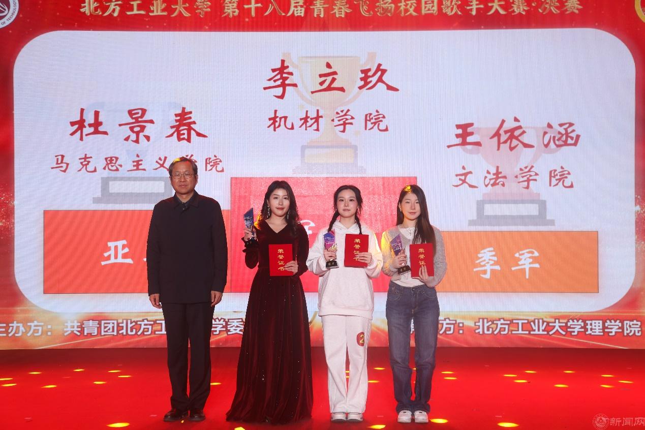 经过激烈比拼,最终李立玖,杜景春、王依涵分别获得了此次比赛的冠亚季军;赵征获得了最佳潜力奖,刘燕航获得了最具人气奖;蔡翌瑄、吴涵宇、李昀珂、刘燕航获得了优胜奖;校党委副书记史贞军、校团委书记杨超、理学院院长李沍岸为获奖选手颁奖。