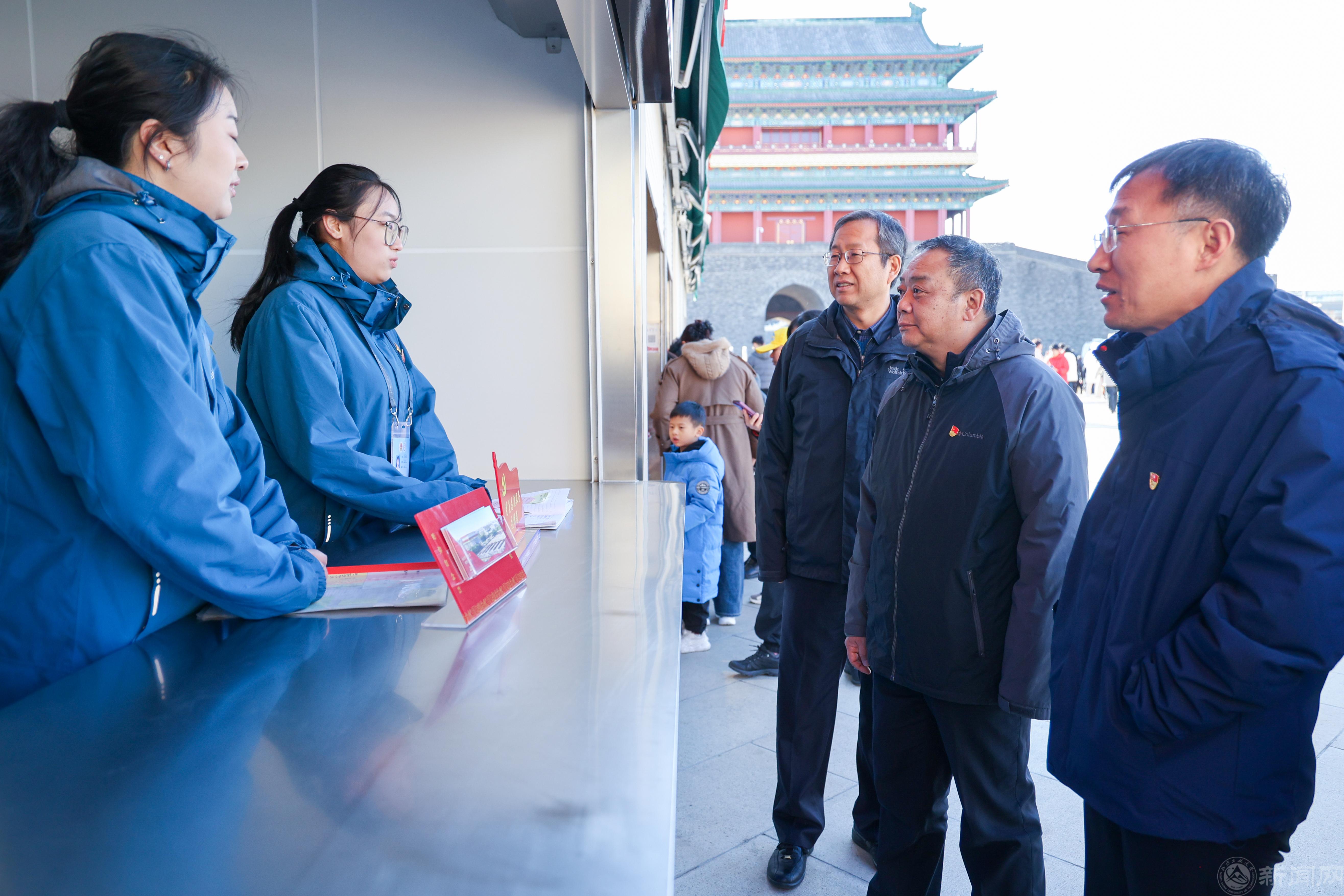 11月26日,校党委书记刘军、副书记史贞军带队前往毛主席纪念堂看望并慰问在岗服务的学生志愿者,团市委副书记李建忠,石景山区委副书记、组织部部长张利军,以及北京志愿服务联合会、石景山区委社会工作部、石景山团区委相关负责人一同参加慰问活动。一行人亲切看望了正在岗位服务的志愿者,与志愿者们亲切交流,实地了解志愿者岗位设置和工作安排等情况,并为志愿者们发放慰问物资。