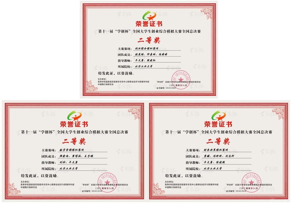 “学创杯”全国大学生创业综合模拟大赛由高等学校国家级实验教学示范中心联席会经济与管理学科组、中国陶行知研究会主办,是中国高等教育学会“全国普通高校大学生竞赛排行榜”A类赛事,至今已举办11届。本次大赛,全国参赛院校超过1500所,参赛团队超过12万支,参赛师生总数近50万人,比赛通过校赛、省赛、全国总决赛三级激烈竞争和严格选拔,最终伟德官网经管学院在创业综合模拟赛项、数字营销模拟赛项和财务决策模拟赛项中均获得了全国二等奖的优异成绩。