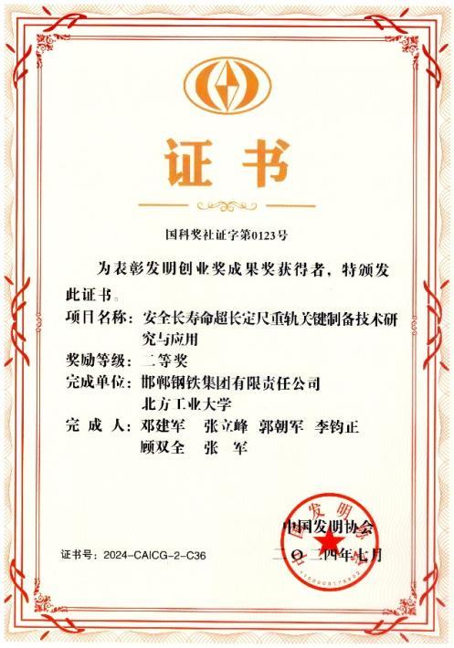 “安全长寿命超长定尺重轨关键制备技术研究与应用”针对超长定尺钢轨存在的内部洁净度差、表面尺寸和平直度波动等严重影响铁路安全和在线服役寿命的行业瓶颈难题,首次开发了安全长寿命超长定尺钢轨洁净度提升冶金关键技术,解决了超长定尺钢轨冶炼过程夹杂物聚集的难题,揭示了钢液中大型夹杂物形成和演变机理,实现了超长定尺钢轨NDT探伤和非金属夹杂物稳定控制。