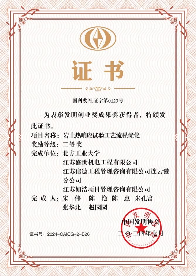 “岩土热响应试验工艺流程优化”项目立足地热能开发利用中岩土热物性研究中热响应试验存在的核心问题,通过试验及理论研究明确优化了热响应试验流程,从而获取准确的热物性参数,节省地埋管投资,且可以保证高效开发利用浅层地热能,并成功应用于全国多个工程项目。