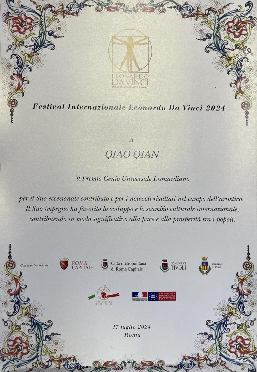 近日,2024达·芬奇艺术奖颁奖典礼在罗马市政厅揭幕。本次颁奖典礼由意大利国会参议院议员Alessandro Battilocchio 先生、罗马市文化旅游和时尚设计委员会主席Mariano Angelucci先生、意大利达·芬奇国际文化艺术交流协会会长Wang tianqi先生、副会长Alessandro Petrini 先生主持并颁奖。伟德官网乔迁老师获评杰出艺术家奖,这一殊荣旨在表彰在艺术领域具有杰出成就的艺术家与研究者。