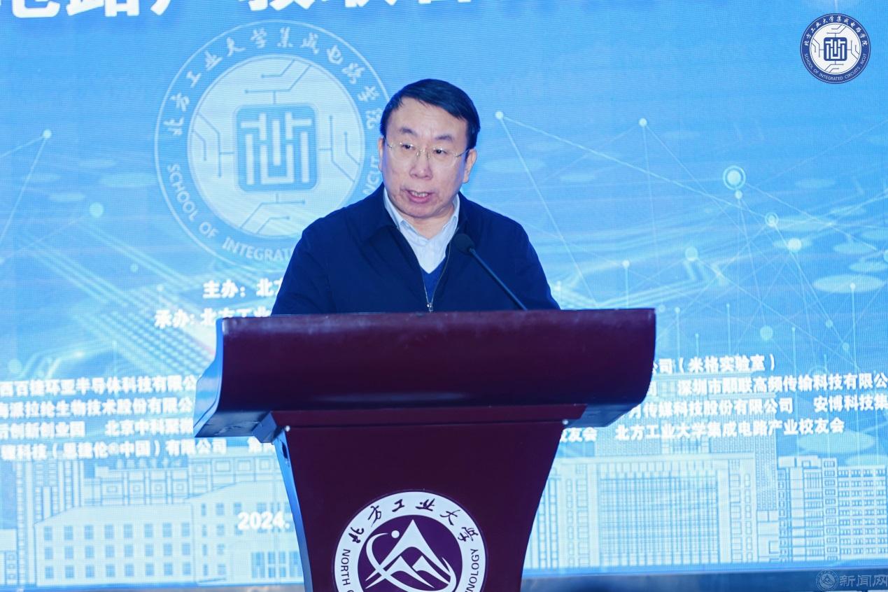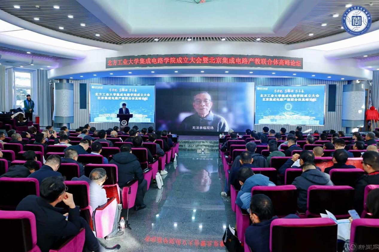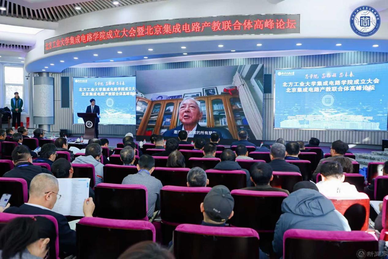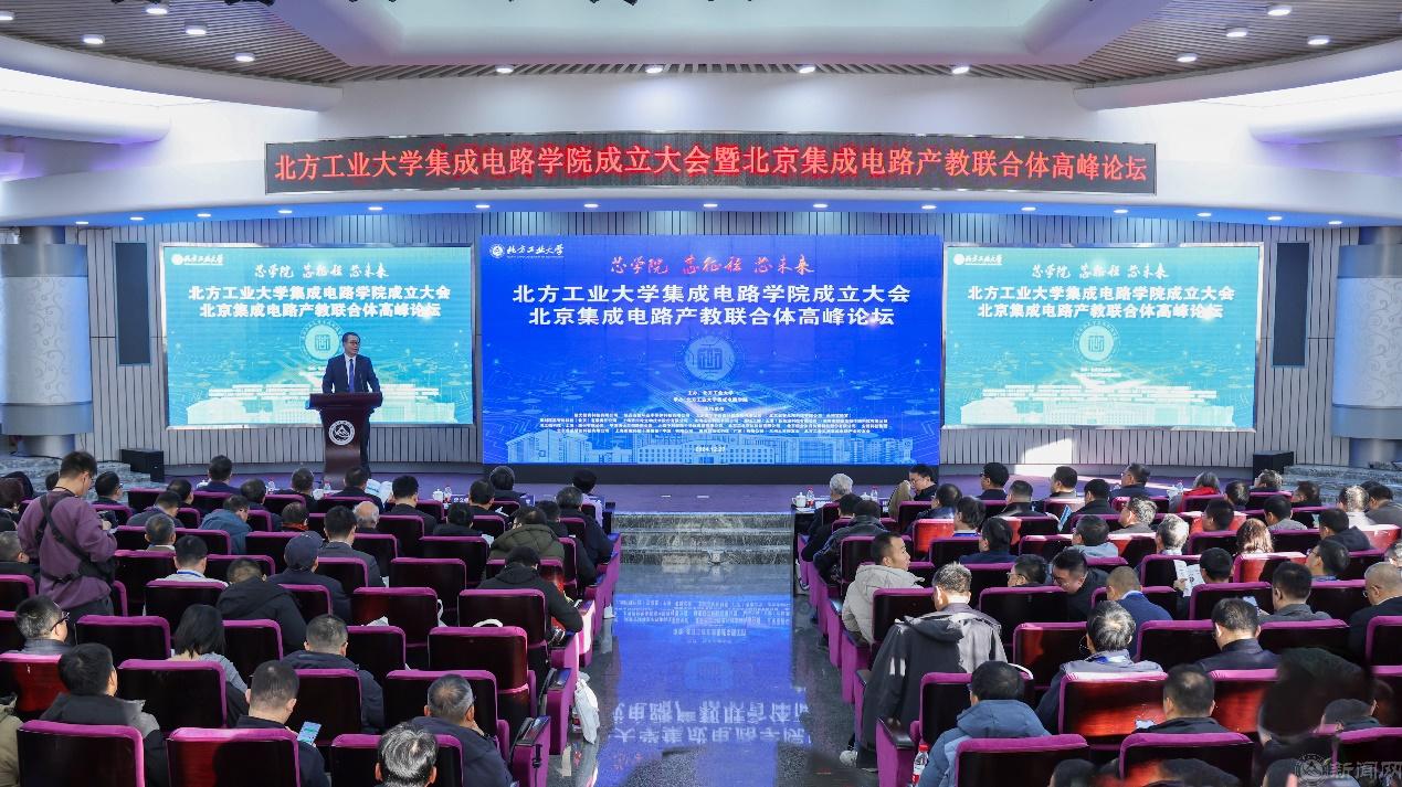 12月27日,BV伟德官方网站集成电路工程学院(下简称“集成电路学院”)成立大会暨北京集成电路产教联合体高峰论坛在广学楼报告厅举行。中国科学院院士欧阳钟灿,中国科学院院士郭雷,北京市教委二级巡视员杨江林,石景山区政府党组成员、副区长李文化,门头沟区副区长陈军胜,北京市人才工作局人才开发处三级调研员董伟,中国集成电路创新联盟秘书长、欧亚科学院院士叶甜春,北京集成电路学会秘书长陈小男,北京欧美同学会副会长、北京市人大常委会委员陶庆华,BV伟德官方网站党委副书记、校长张立峰,党委常委、副校长王建稳,党委常委、副校长王力,副校长卢晓斌出席。来自政府与科研机构、兄弟院校和合作企业的专家、学者和嘉宾,及学校师生代表参加。大会由BV伟德官方网站党委常委、副校长李全明主持。