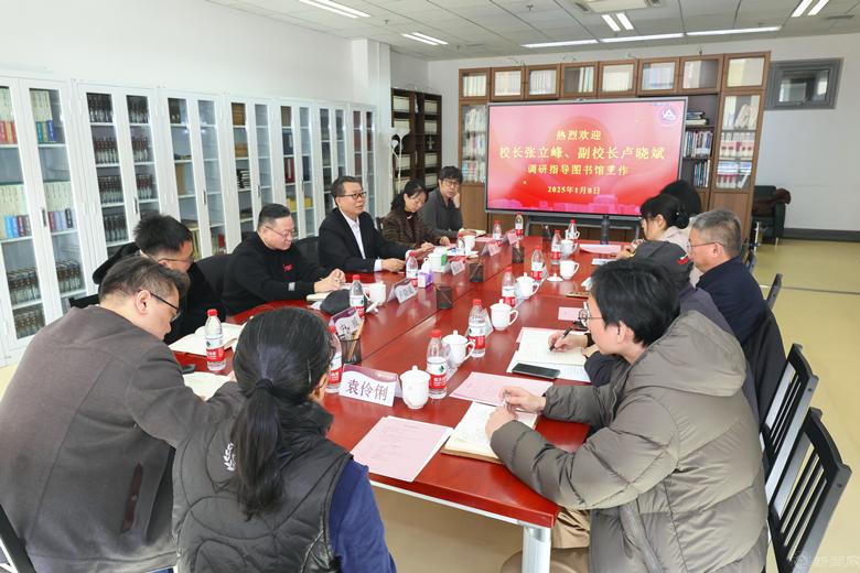 1月8日上午,党委副书记、校长张立峰到图书馆调研指导,听取图书馆工作汇报,与图书馆馆员代表座谈。副校长卢晓斌主持调研。