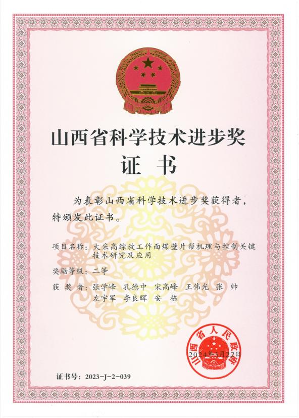 近日,山西省人民政府颁发了2023年度山西省科学技术进步奖证书。伟德官网土木工程学院教师宋高峰、安栋参与的项目获得了山西省科学技术进步二等奖。