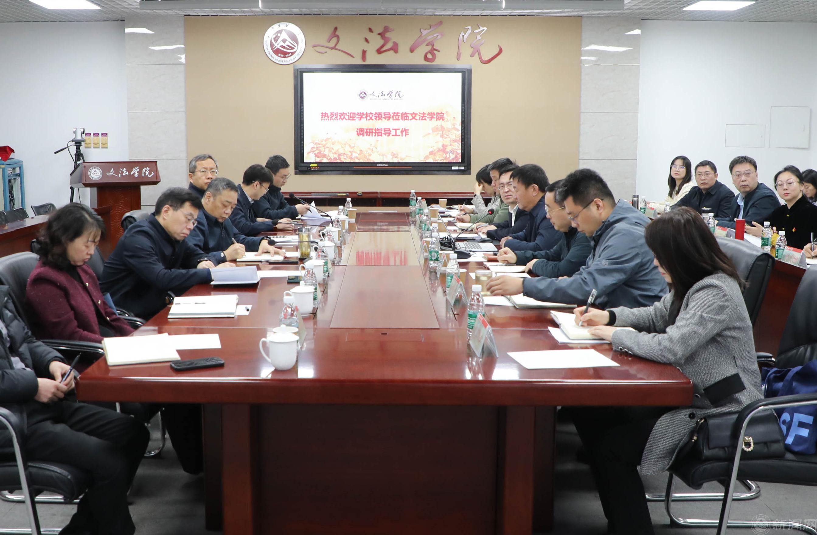 刘军听取了文法学院关于学院党代会确定的任务目标落实、第九届党委巡察和全面从严治党反馈整改进展、文法学院建设整体情况以及学院2025年重点工作汇报,并与学院领导班子、系主任、责任教授、党支部书记等进行了座谈交流。