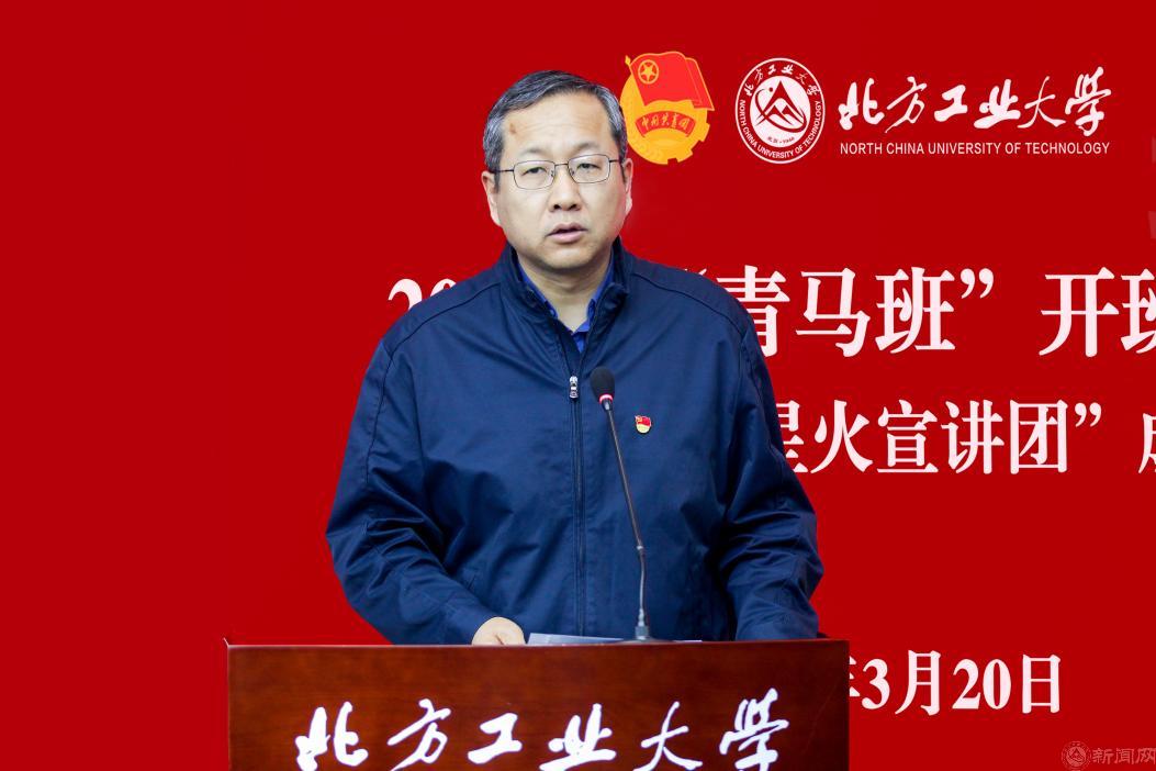 在全校师生深入学习贯彻党的二十大和二十届二中、三中全会精神之际,为深入实施“青年马克思主义者培养工程”,用党的科学理论武装青年、指引青年,3月20日学校举行2025年青年马克思主义者培训班开班暨青马工程“星火宣讲团”成立仪式。校党委副书记史贞军出席,宣传部、学工(研工)部、马克思主义学院主要负责人,各学院党委副书记、团委书记、青马班指导教师代表和青马班全体学员出席仪式。校团委书记杨超主持会议。