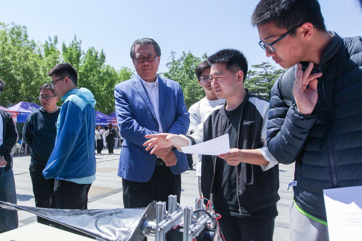 4月25日,由校团委主办、人工智能与计算机学院团委承办的第34届科学节“工韵智汇”科创大集市在毓秀广场举行。近30支大学生科技创新团队齐聚一堂,现场展示人工智能、智慧交通、机械制造等领域的创新研究成果,吸引近2000名师生到场参观交流。