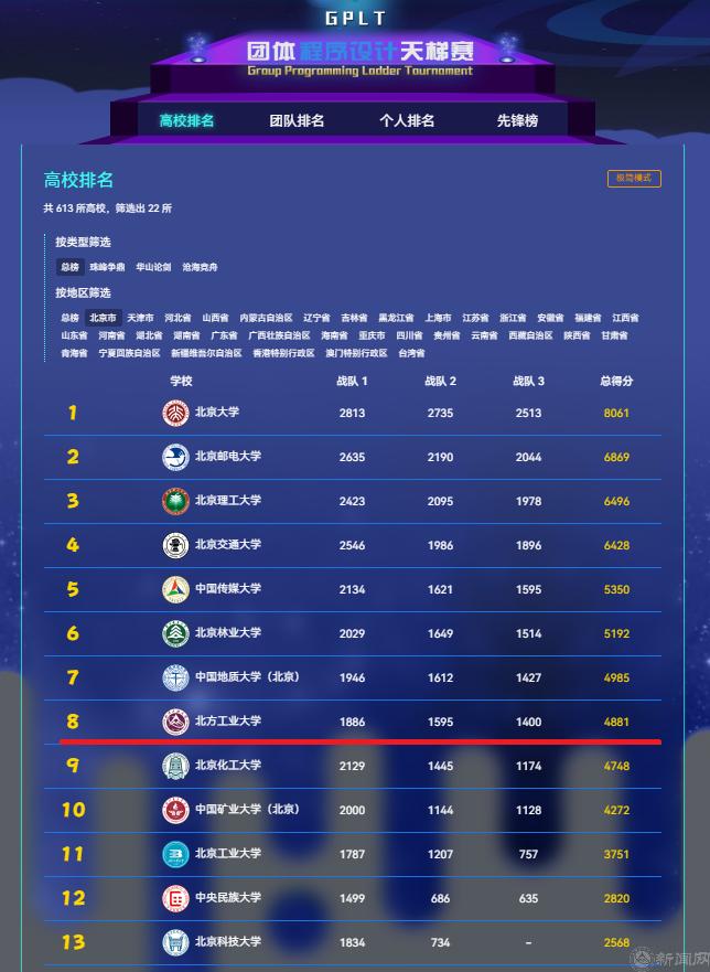 近日,第十届“中国高校计算机大赛——团体程序设计天梯赛”全国总决赛成绩揭晓,伟德官网在比赛中获全国团队二等奖1项、全国团队三等奖2项,全国个人二等奖2项、全国个人三等奖8项。在北京22所参赛高校中,总成绩排名第8位,全国排名第102位,北京市属高校第1位。
