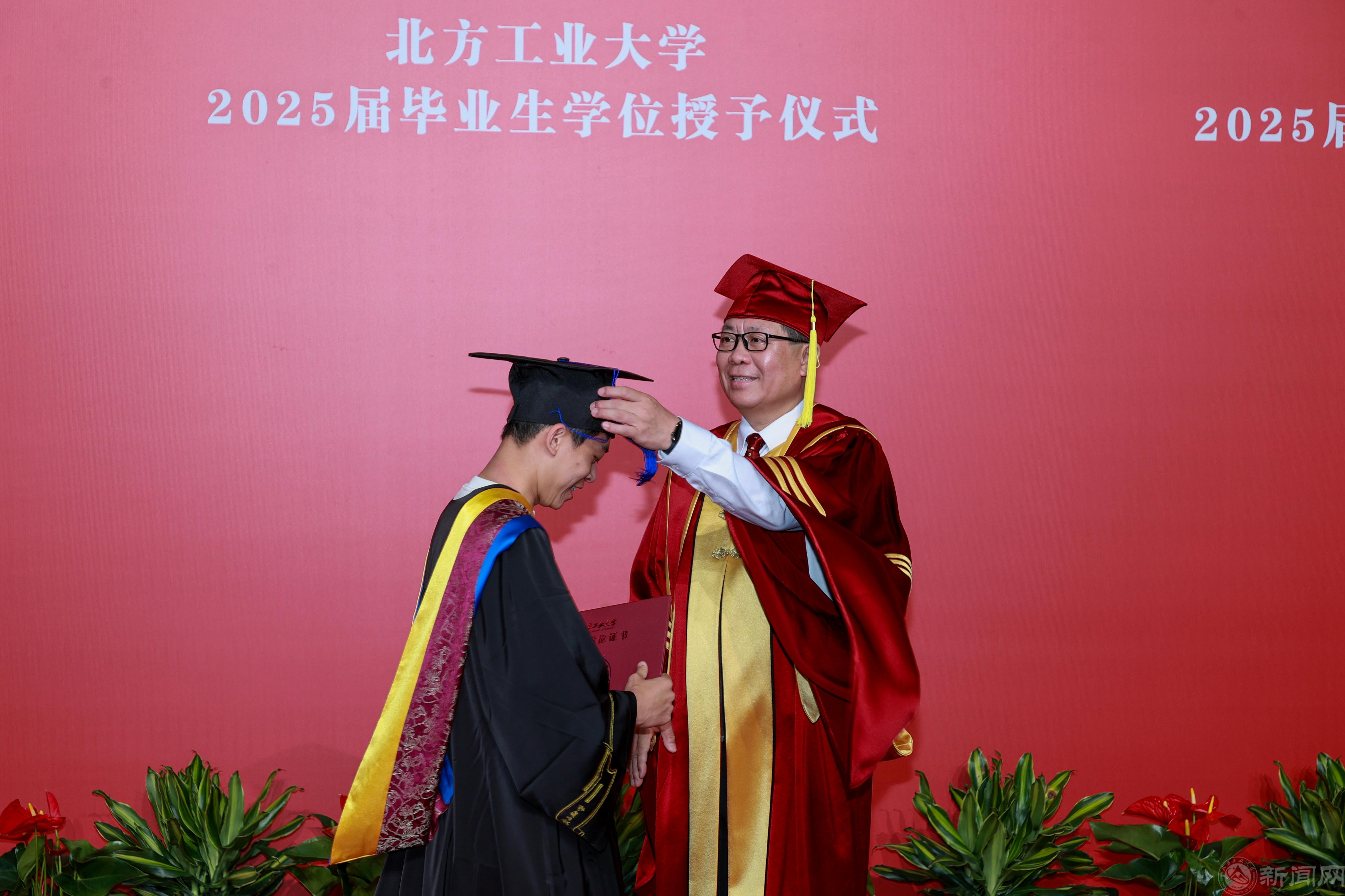 张立峰表示,在座的毕业生们是幸运的一代,是坚强的一代,是教育强国号角中努力奋斗的一代。大家生逢国家日新月异发展的新时代,见证学校实现“四新”发展、开启“一校两区”新篇章。同学们用大学四年的奋斗拼搏,在科技创新、学术科研等领域不断创新超越,书写了2025届同学浓墨重彩的一笔。