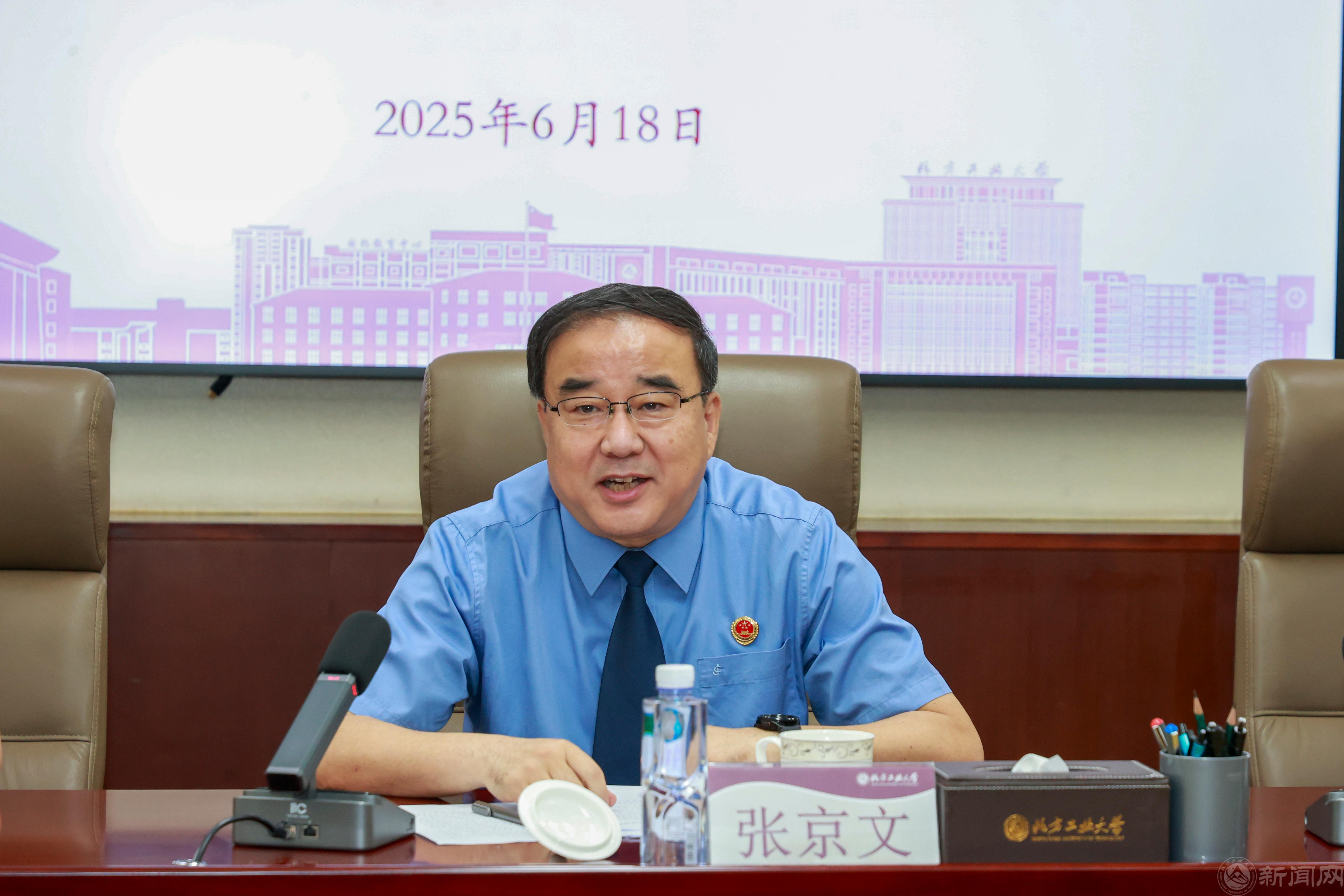 张立峰热情欢迎石景山区人民检察院检察长张京文一行来访。他介绍了学校历史沿革和“四新”建设进展。他表示,BV伟德官方网站地处石景山区,坚持“扎根京西,兴工报国”,正朝着建设“特色鲜明、优势突出的高水平工科大学”坚定迈进。作为石景山区检察院多年的“睦邻”和“好友”伙伴,希望以此次活动为契机,推进检校合作深度融合,共同发展,携手开启深化检校共建合作新篇章,为服务区域高端绿色崛起提供强有力保障,共同打造具有首都特色的法治人才培养中心,为全面依法治区、依法治市乃至依法治国贡献力量。