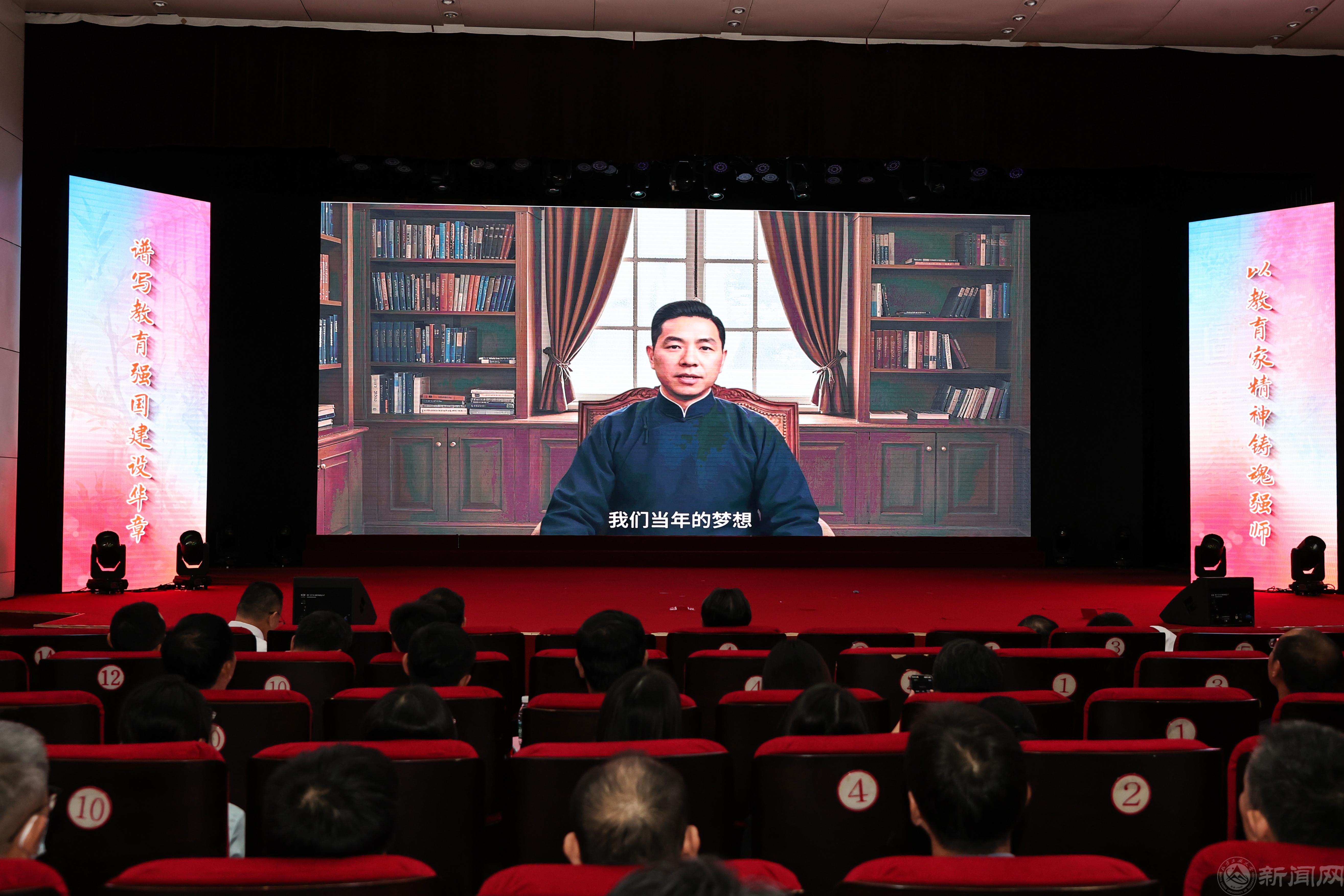 此次大会专门设置了一个特别环节,借助AI技术,学校首任校长陈光熙穿越时空,通过视频寄语师生肩负传承文明使命,推动实现民族复兴。