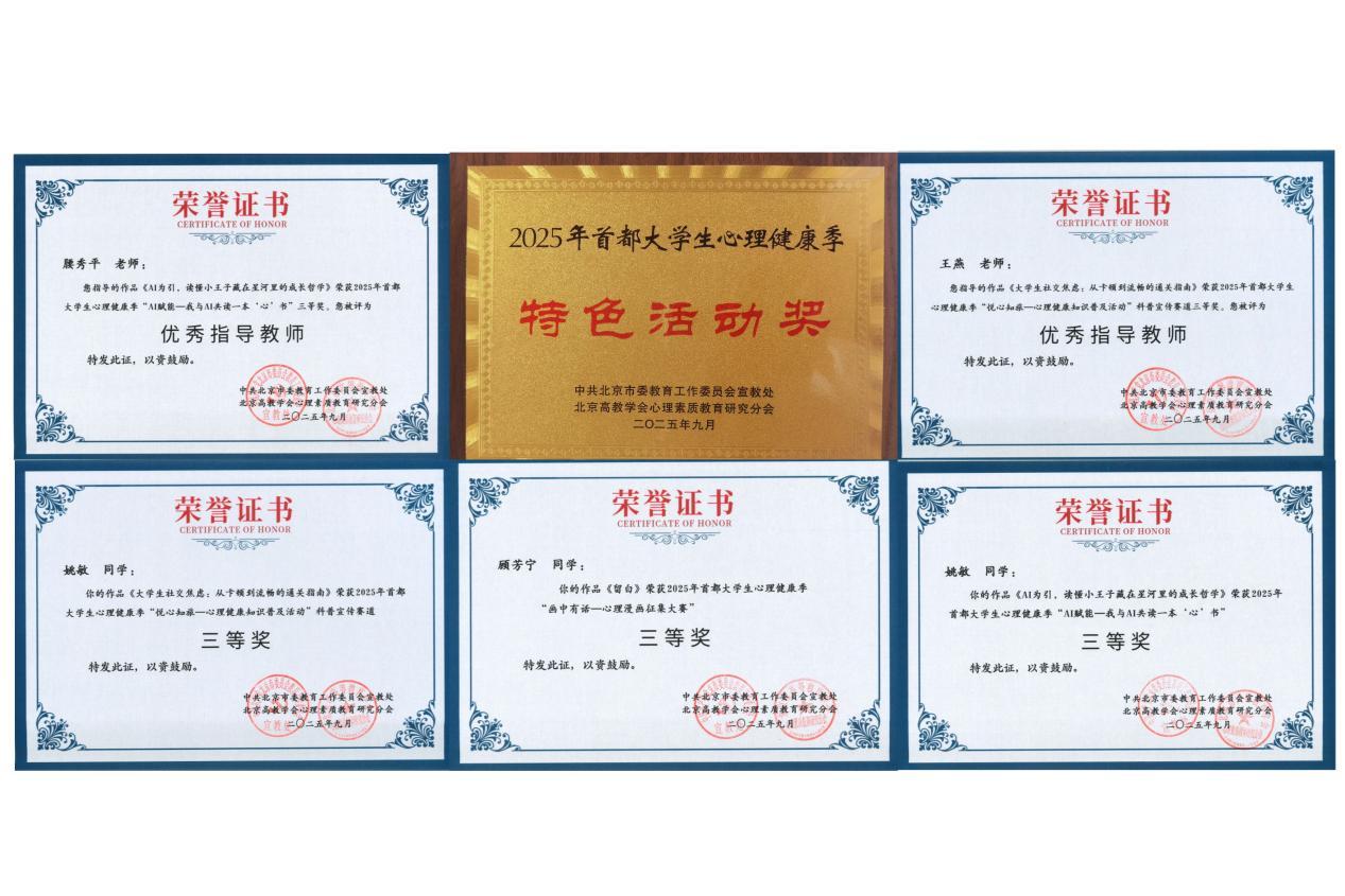 9月12日,2025年首都大学生心理健康季总结暨秋季学期工作计划会在华北电力大学举行,会议对2025年首都高校心理健康季工作情况进行总结表彰,伟德官网荣获集体“特色活动奖”,两名教师荣获优秀指导教师奖,学生参赛作品荣获三等奖3项。