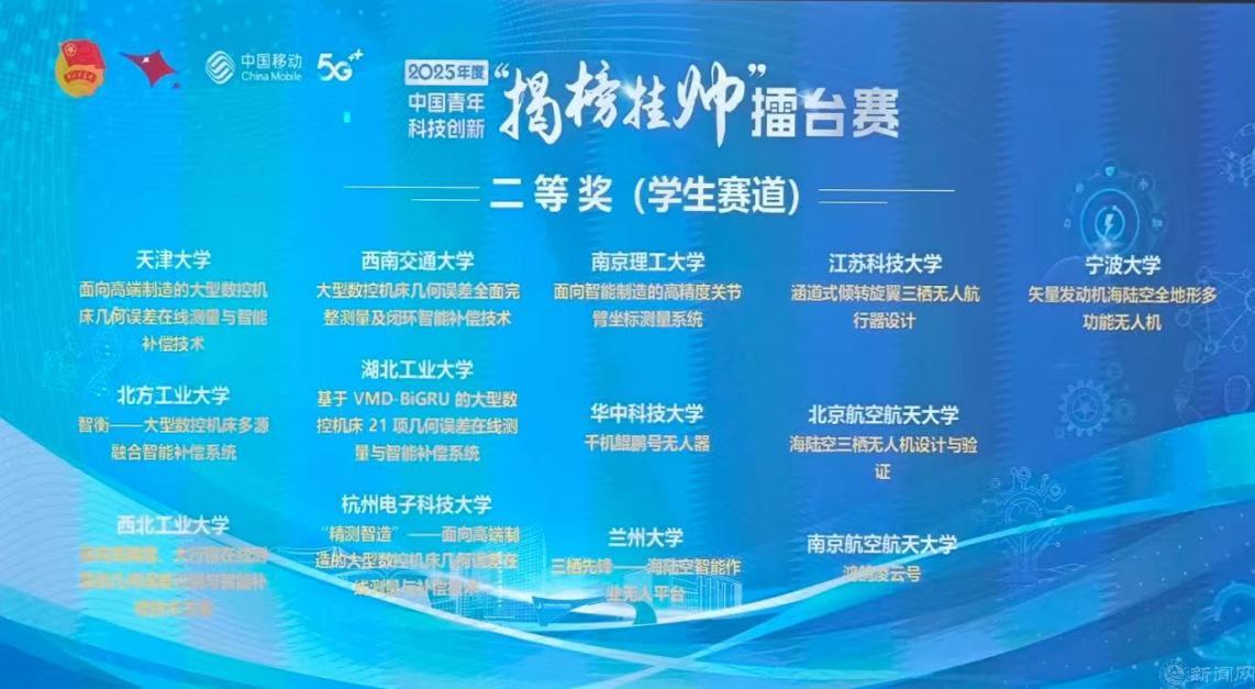 近日,由共青团中央、中国科协、教育部、中国社会科学院、全国学联联合主办的2025年度中国青年科技创新“揭榜挂帅”擂台赛高端装备领域主擂台赛在湖南长沙市举行。伟德官网学生创新团队凭借自主研发的“智衡——大型数控机床多源融合智能补偿系统”项目从来自全国121所高校的302支顶尖团队、近千名科创青年中突围,荣获学生赛道全国二等奖。
