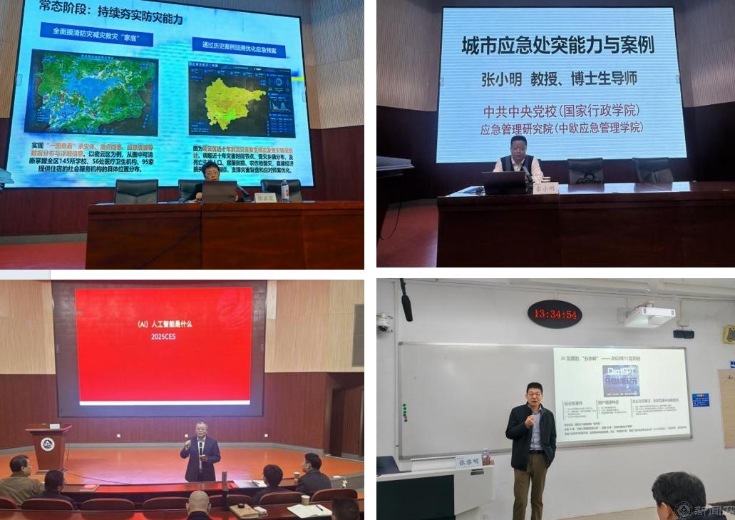 本次高研班还特邀国家防灾减灾中心、中共中央党校(国家行政学院)、北京金和网络股份有限公司等单位的四位专家,分别以《灾情信息社会化获取与深度调查评估》《城市应急处突与案例》《人工智能赋能应急管理的系统化方案》《人工智能与机器人技术在现代安全应急中的前沿应用与挑战》等为题进行授课。专家们聚焦人工智能、大数据、区块链、物联网等前沿科技与应急管理的融合应用,系统阐释了其在特大城市风险监测、灾情获取与应急决策中的最新成果与实践路径。