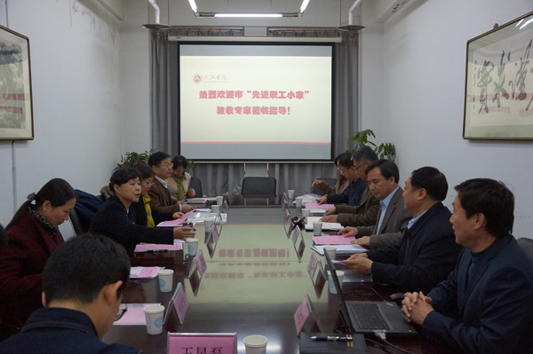 评审组专家首先实地考查了教工之家现场,并查阅了工会文件资料,专家表示教工之家面积很大、设施很全、文件资料很丰富。接着专家组到会议室听取汇报。文法学院院长郭涛代表学院行政讲话,阐述了积极支持工会工作的几项制度和措施。学院党委书记、分工会主席袁本文从组织领导、民主管理、教职工权益维护、教职工队伍建设、工会组织建设5个方面对学院工会工作及建家情况作了汇报,并回答了专家组提出的几个问题。