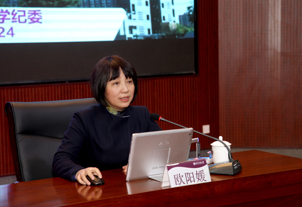 校纪委书记欧阳媛围绕监督执纪问责,结合伟德官网工作实际,就近期实施的《中国共产党纪律检查机关监督执纪工作规则(试行)》及伟德官网2017年纪检监察工作要点、党风廉政宣教计划、提醒约谈函询诫勉实施办法、主体责任全程记实办法等五个重要文件进行了深入浅出、全面系统、具体详尽的解读,为党员干部如何切实扛起责任、履行“一岗双责”释疑解惑。