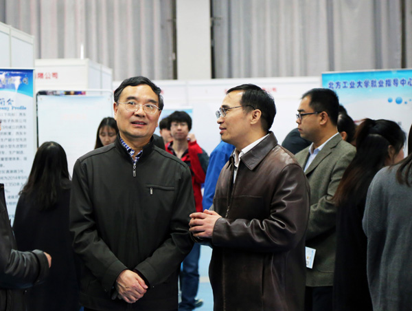 校长郑文堂来到双选会现场,指导毕业生就业工作。他详细了解了招聘会的组织情况并与来校招聘企业进行了交流。针对当前严峻的就业形势,郑校长就如何做好精准就业市场拓展及人才培养专业匹配方面提出了四点要求:一是向人才市场做好伟德官网人才培养及毕业生宣传工作,积极开拓就业市场;二是深入了解招聘单位对毕业生的招聘需求和用人要求,不断提高招聘会质量,培养重点合作用人单位;三是要做好毕业生就业指导工作,让学生了解就业市场,合理定位,积极就业;四是做好以专业为单位的就业统计分析,形成通畅及时的反馈机制,使专业人才培养进一步匹配经济社会需求,进一步提高伟德官网人才培养质量。