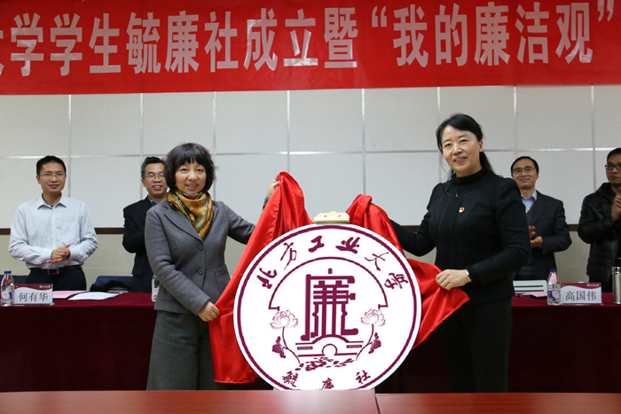 随后举行了伟德官网首个大学生廉洁教育社团“毓廉社”的成立仪式。校纪委书记欧阳媛、校党委副书记田红芳为毓廉社的标志揭幕,校纪委副书记刘夕海、学生工作部部长高国伟为社团指导老师、社团负责人颁发了聘书,校团委社团工作部部长谌奕鹏宣读了关于同意毓廉社的批示,学生社团联合会主席冯新宇宣读了毓廉社章程,毓廉社第一任社长林一诺宣读了社团2017年工作计划。