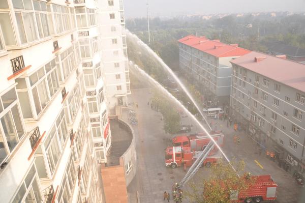 11月3日下午,学校在学生公寓慧斋举行了消防疏散灭火演习,学校党委副书记田红芳和相关部门领导参加并观看了消防演习。本次活动由学校消防安全委员会与石景山区消防支队联合举办,共出动微型消防车1台,消防云梯车1台,高压水炮车2台,紧急救援车1台,消防官兵20人,疏散安全人员120人;演习主要进行了模拟火情、人员疏散、云梯救人、灭火救援、抢救伤员等科目的演练。整个演习活动高效、流畅,顺利达到了预定目的。