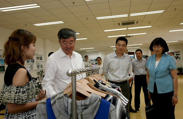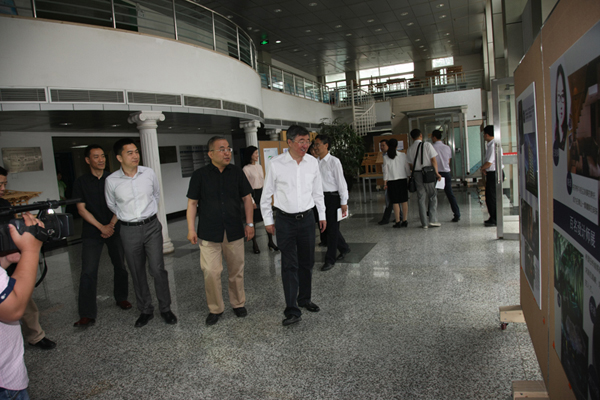 隋振江副市长还参观了“建筑与艺术学院优秀毕业生100设计师展”,仔细观摩了学校培养的建筑艺术专业人才创作的优秀作品。