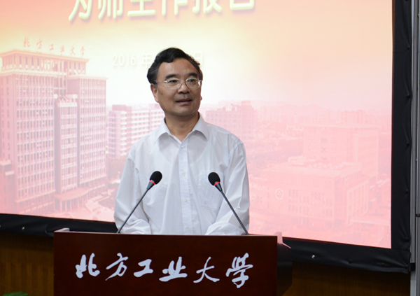 校长郑文堂主持了报告会。他表示,适逢全国科学创新大会召开之际,隋振江副市长的科技创新报告对我们学习贯彻中央精神具有重大意义。学校将主动顺应将首都发展建设的需要,从体制、条件、人才等方面进一步提升科技创新能力,为建设特色鲜明、优势突出的高水平大学而不懈努力。