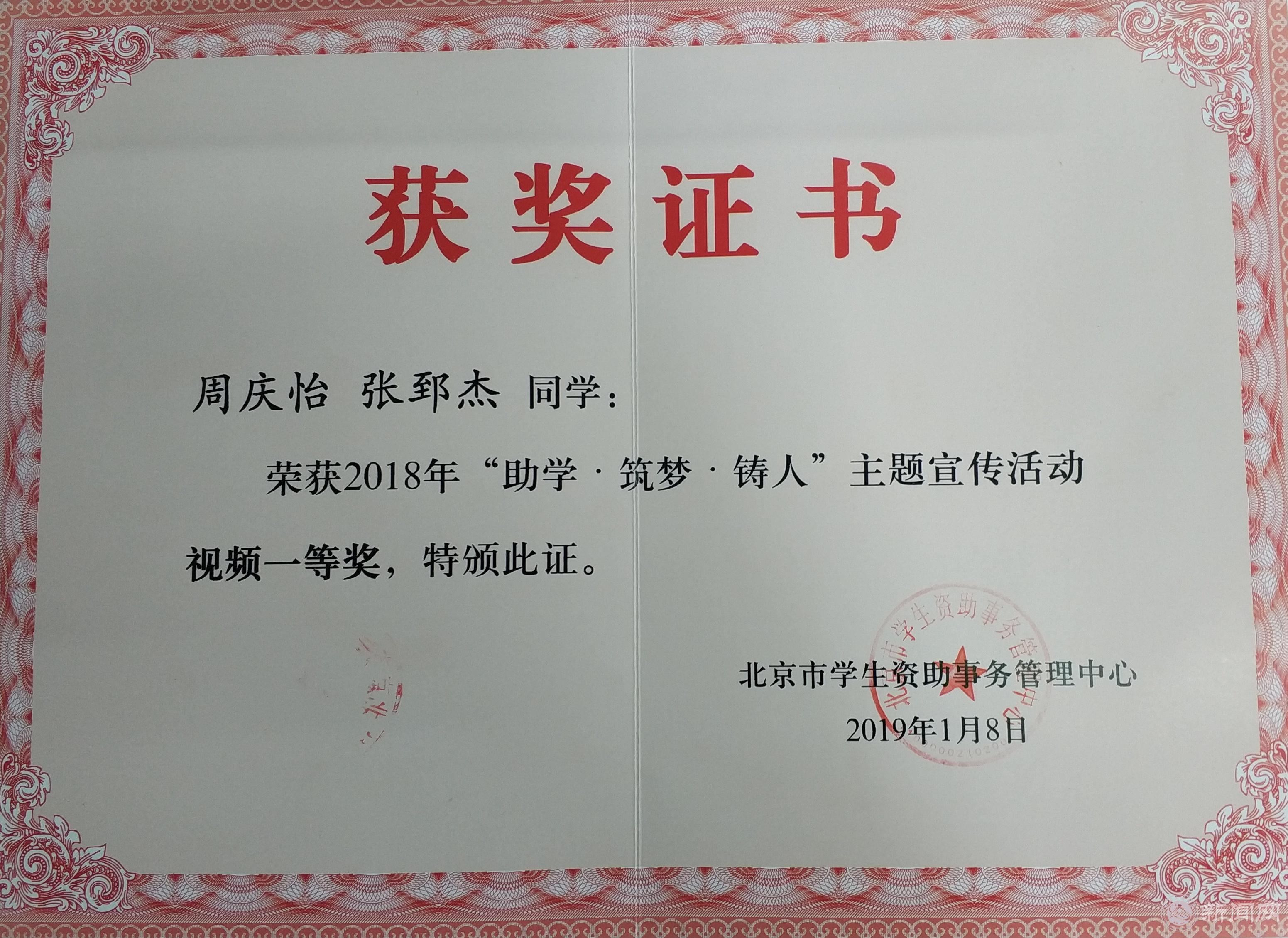 日前获悉,在第五届“助学•筑梦•铸人”主题宣传活动中,伟德官网文法学院英语17-1班周庆怡、日语17-1班张郅杰的作品荣获本次活动北京地区视频一等奖,且为伟德官网视频类参赛作品中唯一获奖作品。