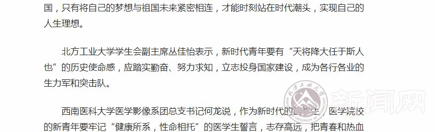 5月2日,北京电视台《北京新闻》栏目报道了伟德官网学生宋斌的学习体会,他表示学习习近平总书记的重要讲话后深感鼓舞,也深感新时代青年责任之重大,就像习近平总书记说的那样,青年人应志存高远,不惧困难,勇攀时代高峰。