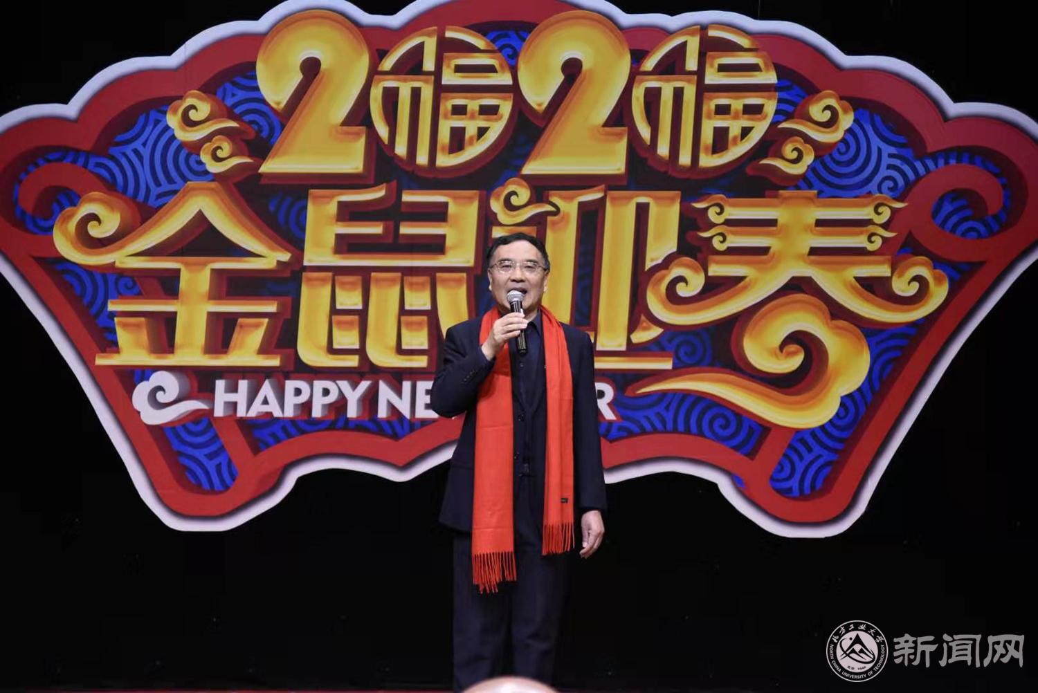 珠猪摆尾未离去,金鼠昂首迎春来。1月17日上午,学生服务楼四层多功能厅张灯结彩、其乐融融。学校2020年“金鼠迎春”春节师生联欢会在此热烈举行。正值农历小年,校领导郑文堂、田红芳、柳长安、马春成,学校各职能部门负责人、各学院领导、全体学工干部,200余名留校本科生、研究生、留学生欢聚一堂,共庆新春佳节。