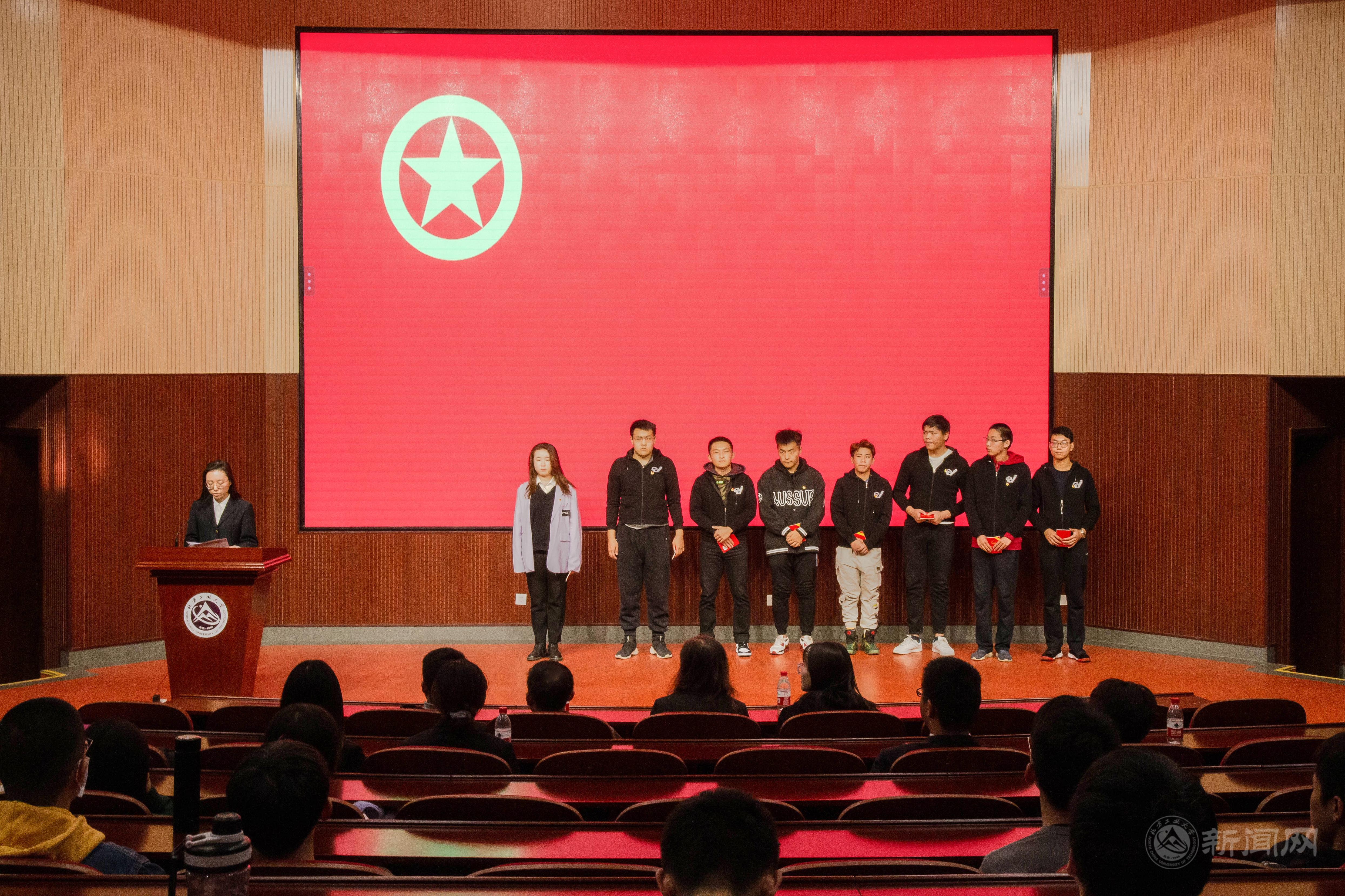 院团委书记石卉为本年度新发展团员颁发了团章和团徽,院团委副书记李泽昕带领全体新老团员重温了入团誓词。