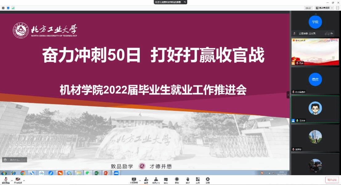 5月23日晚,机材学院线上召开2022届毕业生就业工作推进会,总结分析近一周学院就业工作进展,安排部署下周学院就业相关重点工作。学院班子成员、各系主任、班导师、就业相关辅导员参加会议。